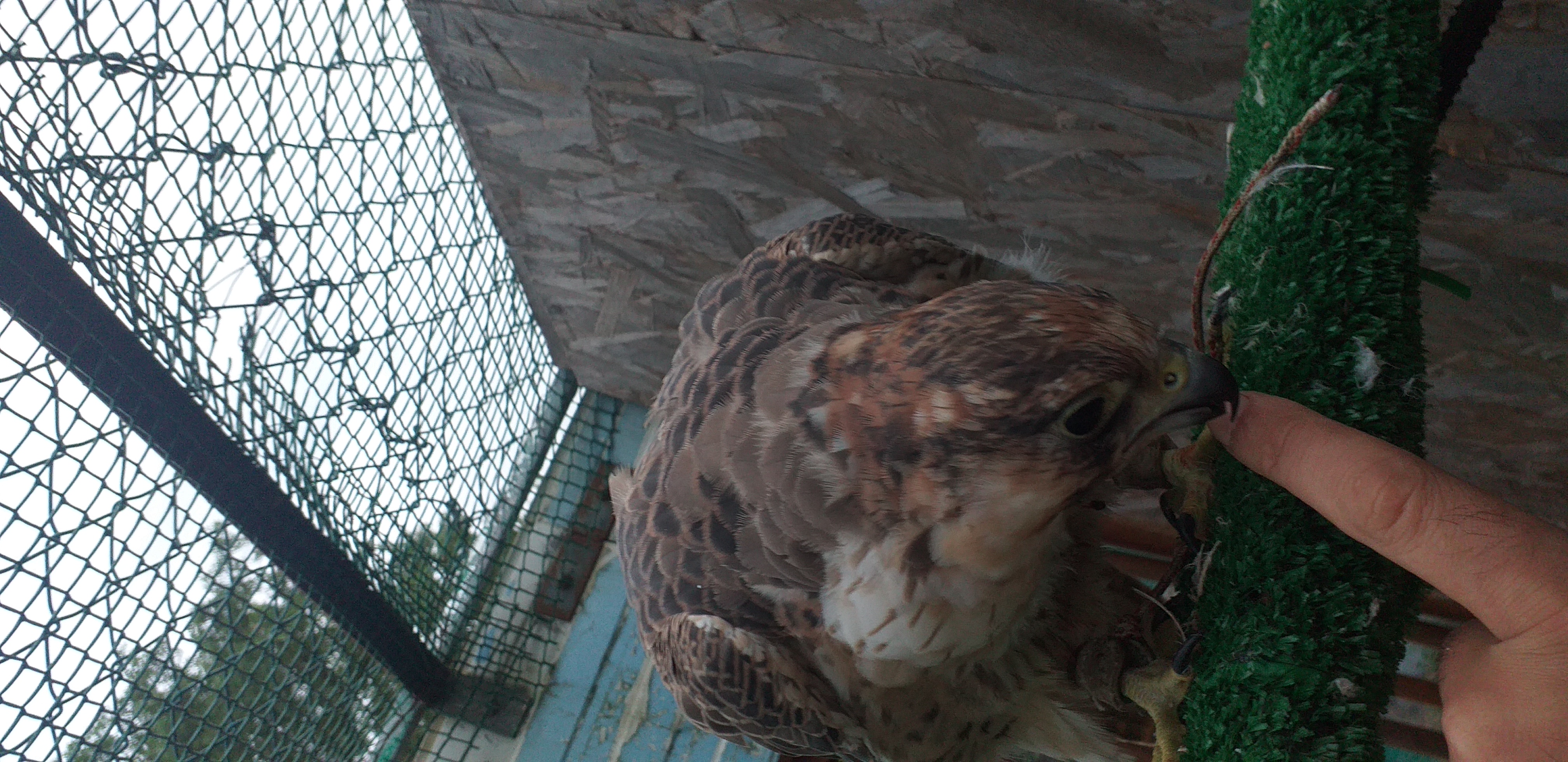 Hoy la saque despues de una semana larga en la muda, y sin pesar la lleve al campo. Pero no te cuento que viento hacia que muchos no se han atrevido soltar estos dias. Con gps claro que tengo ventaja y con la pajara troquelada y conociendola mas o menos la solte, pero no la deje mucho hoy se ha ido tras una paloma al pueblo, la segui por pantalla y vi cuando abandono y se poso al lado de una estacion de trenes... pero antes de salir del campo direccion al coche para ir a buscarla he visto ( por pantalla ) que se puso en vuelo y empezo montar encima del pueblo, y cojio una recta direccion al campo de vuelo ( que no es su campo habitual aqui es la 3ra vez que la vuelo ynunca salio del campo ).... pero si si nos marcava que viene hacia nosotros tomando altura y de repente un compañero dice alli esta entrando y asi fue se nos centro en tornos luchando con el aire y mato la paloma servida. Lo que mas llama de ella y es sencillamente espectacular es su forma de matar, de picar, acuchillar, punta.... entra a muerte y pica muy vertical.