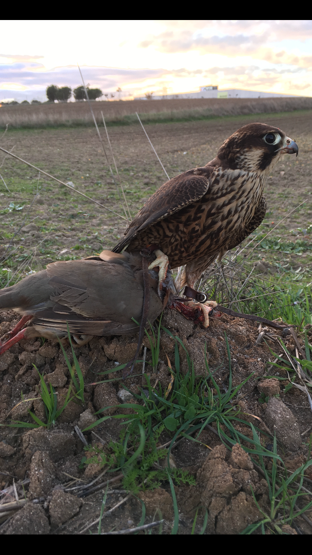 Pájaro con 50 días de vuelo en circular, ha cazado perdices con un peso estable de 560 gr, y palomas en más.