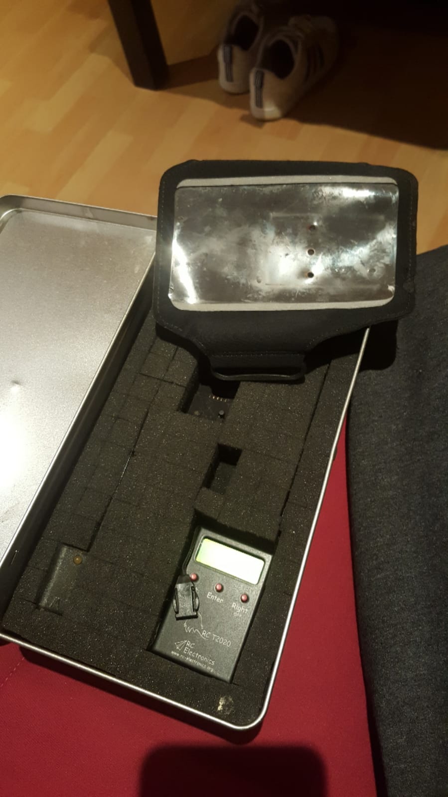 Tray una funda para que sea mas facil la utilizacion en el campo y para mayor seguridad del material.