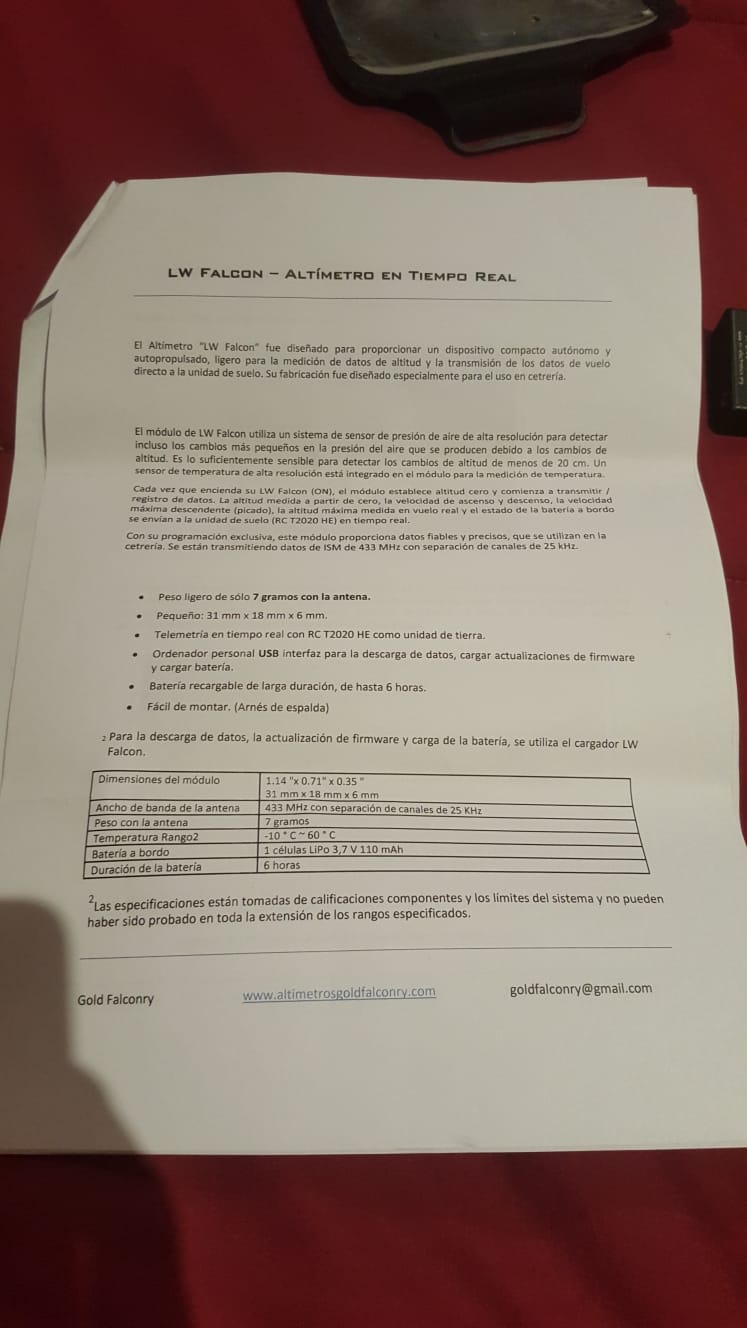 Re: Vendo ALTIMETRO EN TIEMPO REAL GOLDFALCONRY