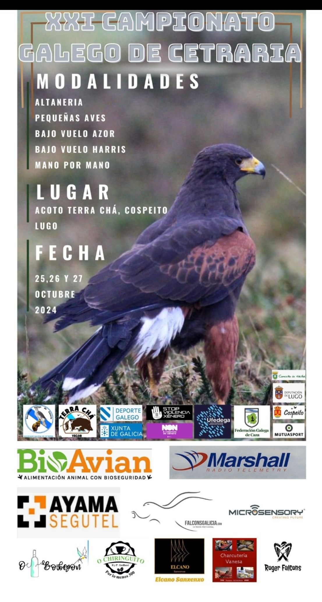 Cartel del campeonato gallego de cetreria que se disputará el próximo fin de semana del 25 al 27 de octubre en Cospeito, Lugo.