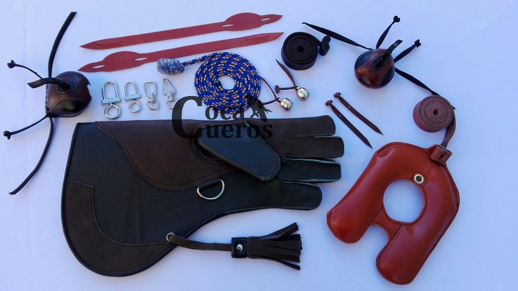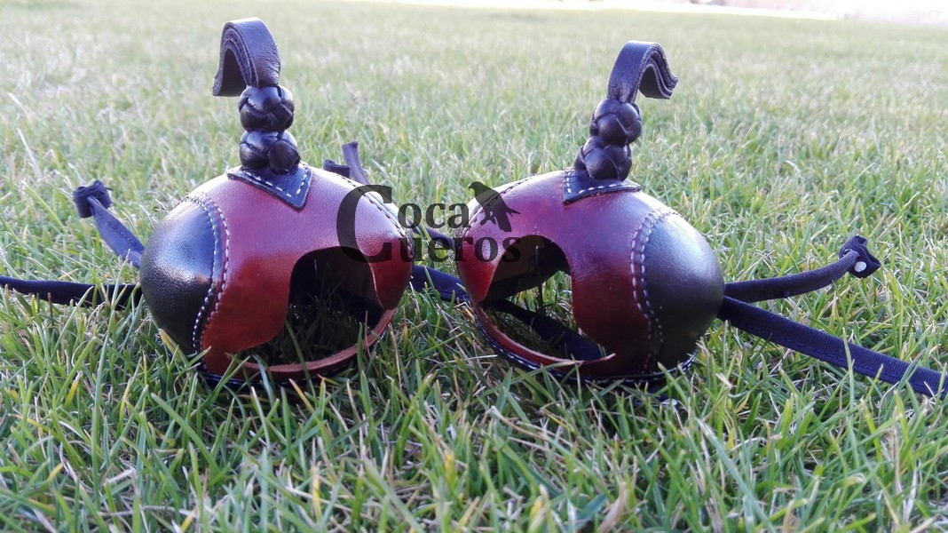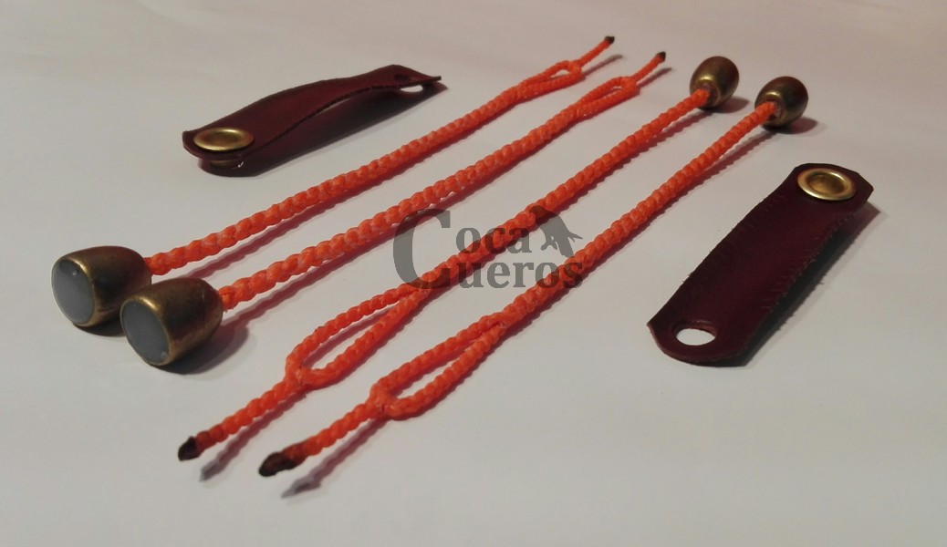 - Correones para cascabeles ( par ) de piel de becerro engrasado. ( Si desea incluir los cascabeles en el equipo el precio asciende a 75 € )